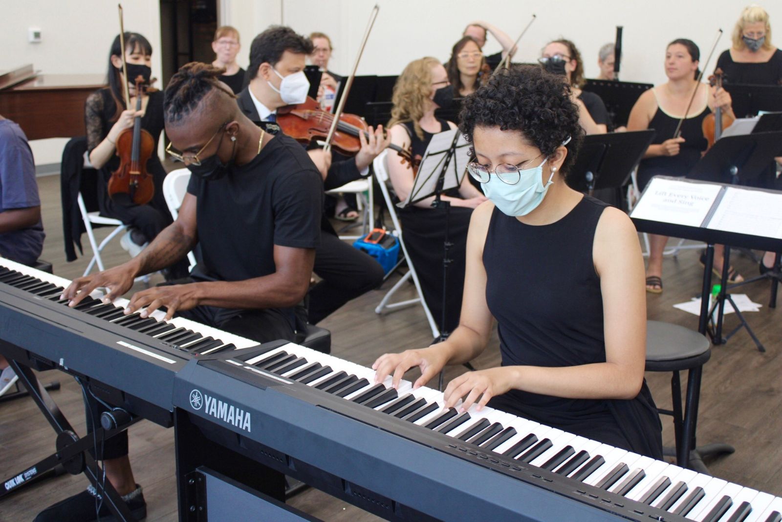 The July 18 concert included historic landmark collaborative performances featuring arrangements of "Lift Every Voice" and "Simple GIfts" created by Maestro Butts, young Newark composer Elijah Souels, and violinist Saki Uetsuhara. The performance marked a first as young Newark piano students (grades K-6) performed as part of the orchestra, alongside the BONJ professional musicians. The music was composed and arranged especially for these youngsters and for the orchestra. It was truly a magical and special moment, hopefully the first of many.
